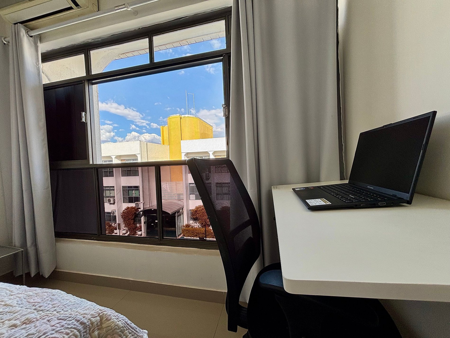 Com uma localização estratégica, no bairro da Asa Sul (bairro central de Brasília), ao lado dos principais pontos turísticos de Brasília, no condomínio temos salão de beleza, restaurante com churrasco e lanchonetes, a menos de 10 min temos farmácia, mercado, ônibus e metrô próximos. Ar Condicionado, espaço pra trabalhar com WIFI , TV com sinal á Cabo Premium com Premiere FC (futebol). O condomínio possui elevador e porteiro presencialmente 24h por dia. A nova capital te espera!