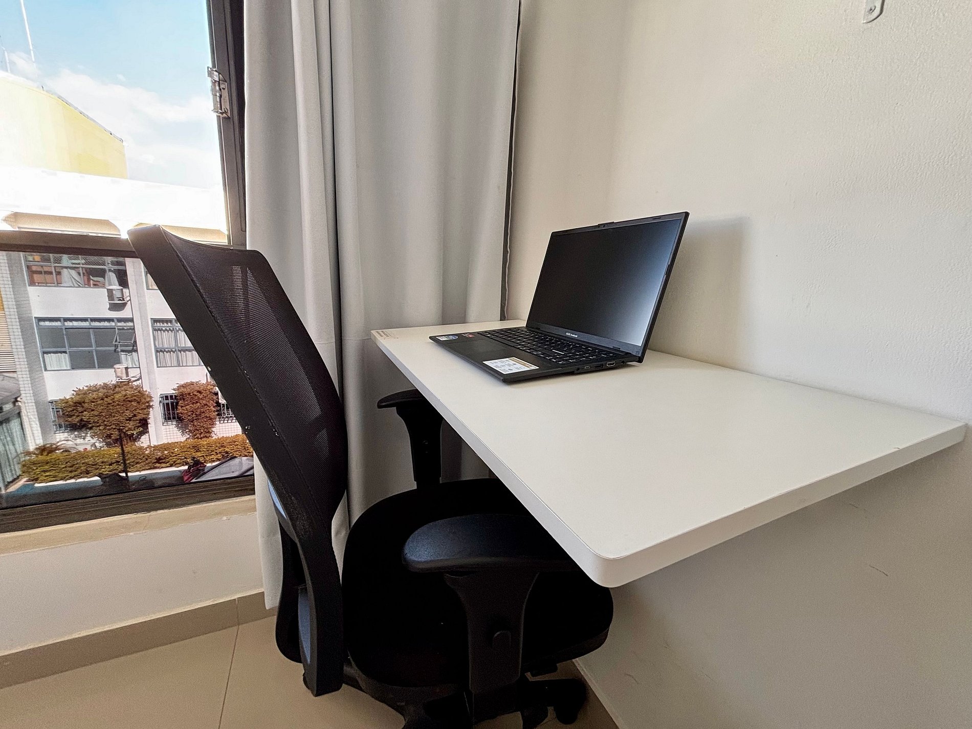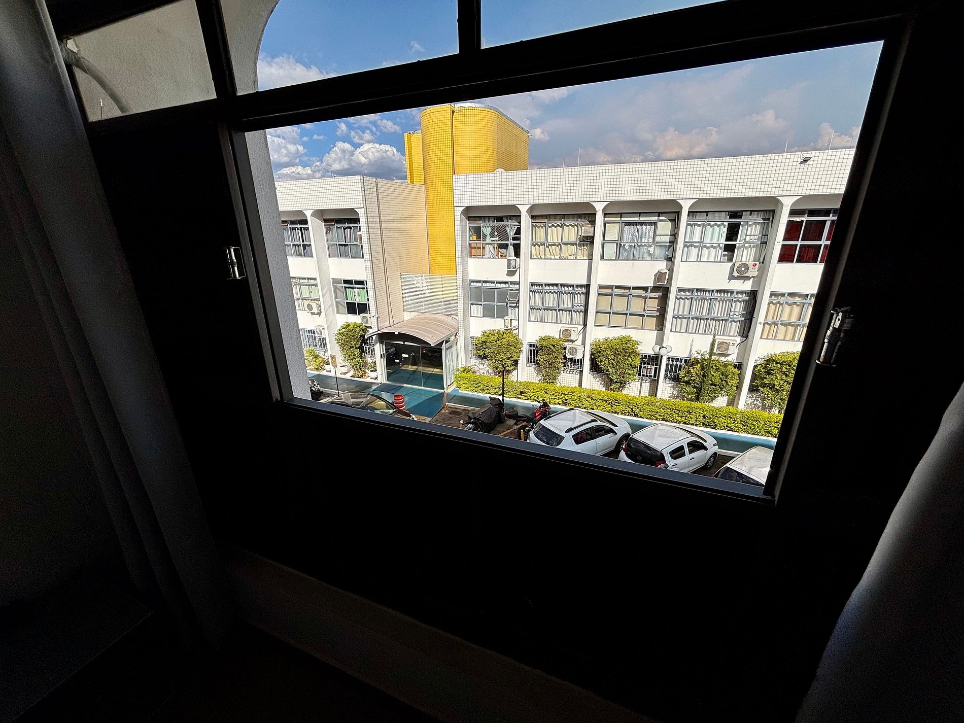 Nos localizamos em um condomínio residencial com portaria e porteiro presente 24 horas por dia! Temos restaurantes no condomínio, vagas de estacionamento públicas em volta do condomínio, e garagem privada no subterrâneo do nosso condomínio (não incluso).