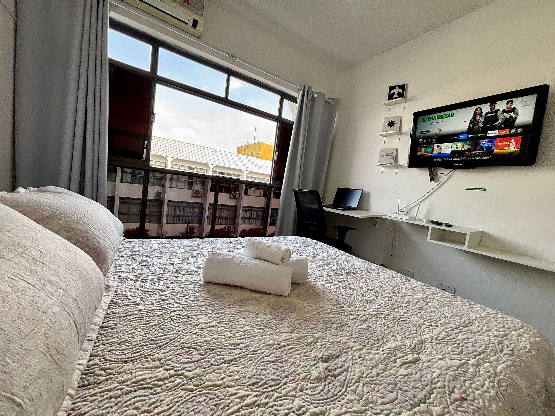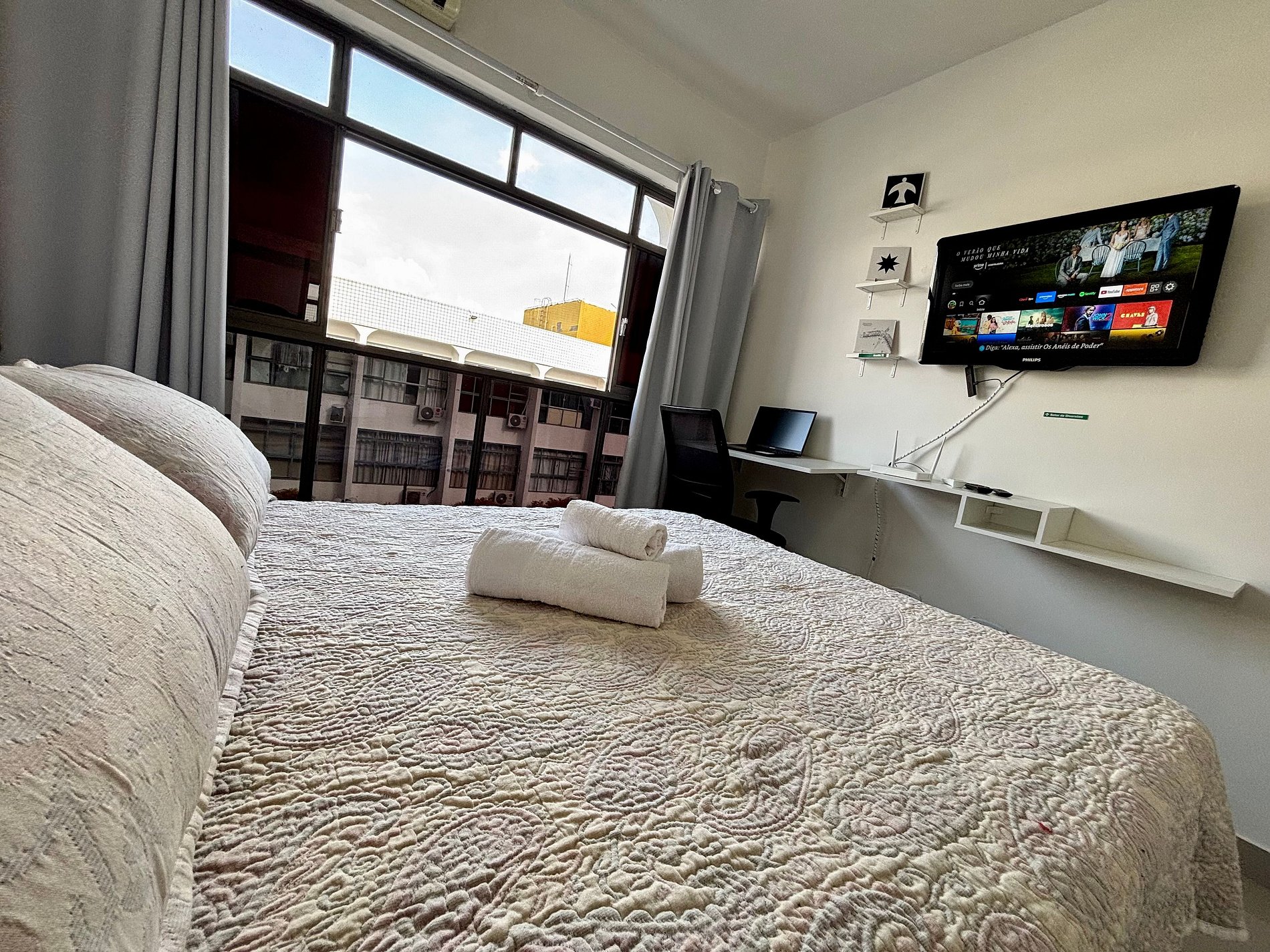 Com uma localização estratégica, no bairro da Asa Sul (bairro central de Brasília), ao lado dos principais pontos turísticos de Brasília, no condomínio temos salão de beleza, restaurante com churrasco e lanchonetes, a menos de 10 min temos farmácia, mercado, ônibus e metrô próximos. Ar Condicionado, espaço pra trabalhar com WIFI , TV com sinal á Cabo Premium com Premiere FC (futebol). O condomínio possui elevador e porteiro presencialmente 24h por dia. A nova capital te espera!